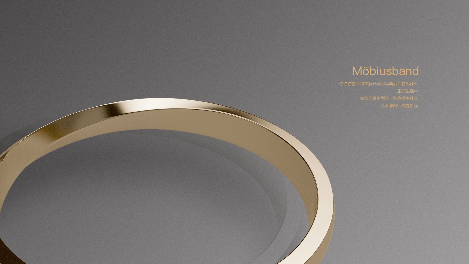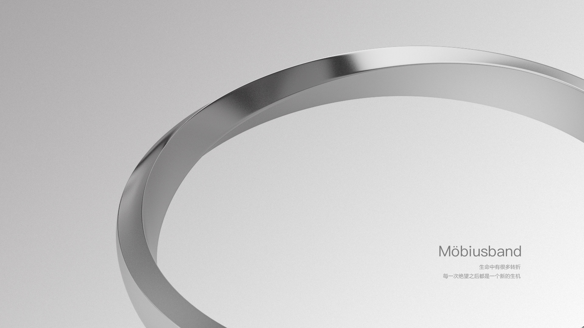 1858年 具有魔术般性质的莫比乌斯环被发现,一根具有两面的纸带在经过180°的扭转之后连接,变成了只有一个面的单侧曲面.没有起点也没有终点形成了一个永恒的圈,循环往复 无止无休..