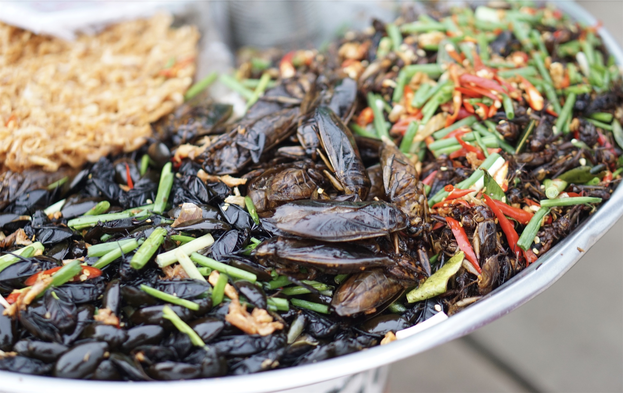 另外一个特别印象深刻的就是吴哥的水果真的便宜又好吃,所谓一美元走天下,一个椰子一美元,一杯鲜榨果汁一美元,一桶泡面也是一美元。当然泡面是不好吃,但是当地的水果是极好的。另外还有一些奇葩食物大家尽量不要轻易尝试:那些马路边的铁板烧,虽然看起来是很香的铁板烧,但其实都是没有熟的东西,全靠当地的太阳曝晒然后洒上一些调料,当地人的铁胃吃消化起来没问题,如果你们也想吃,保你接下来好几天都要拉肚子。更别说那些炸小强烤蚂蚱什么的,珍爱生命,不吃小动物。