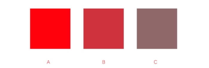 明度很好理解, 就是亮度。一个颜色越亮我们就说这个颜色明度越高。那饱和度呢,通常的解释是:一个颜色越鲜艳,它的饱和度就越高。其实在真实世界里这两个概念是很好理解的,因为现实世界的明度可以无限度的亮。但是在屏幕上有些情况就会让人分不情楚。 比如这三个颜色: