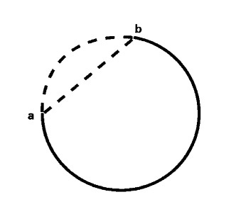 上面中,ab两点之间的直线是最为简洁的,在『a、b两点』这一局部来看,直线是能促进简洁性,但是从『圆』这个整体来看,直线会让它变得更复杂,那条曲线才是符合简洁的选择。