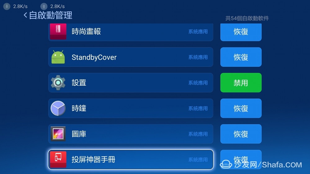 第二天更新: 发现就算是删除掉了 MiTVAdvertise.apk 程序,打开第三方 app 的时候还是会有广告。后来看论坛上的办法是安装一个“沙发管家”。给它一个超级权限,然后让沙发管家来控制小米盒子的启动。听起来还是有点不放心呢,在我印象中国产的这些管家软件都一个尿性。具体设置如下: