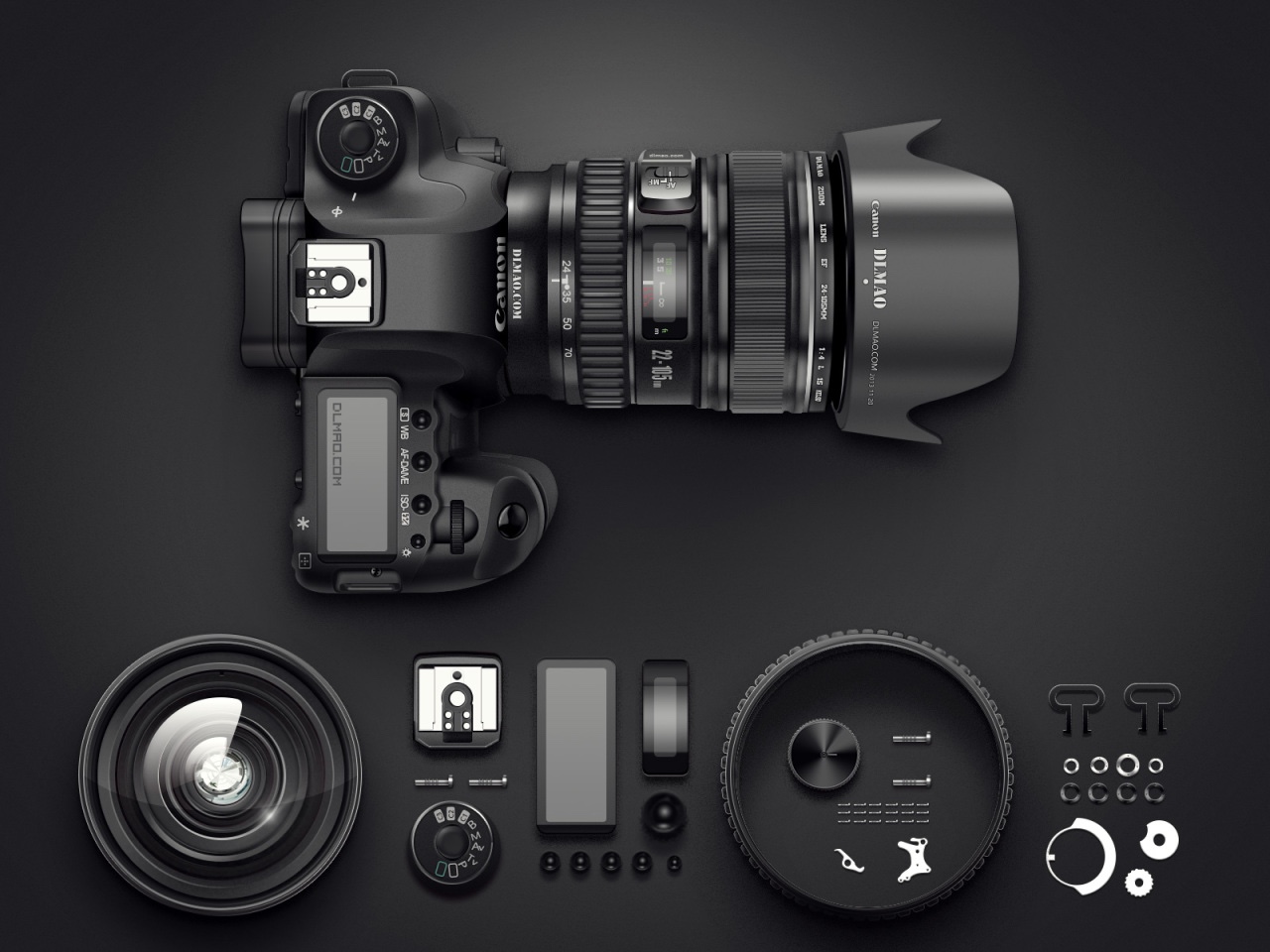 这是拆东西系列的第三篇,佳能5D. 我断断续续找照片找拆解图搞了很长时间, 以至于拆到后面有很多零件我就干脆不画了并且找借口说画布上放不下咯 ~ 所幸完成之后还是比较满意.